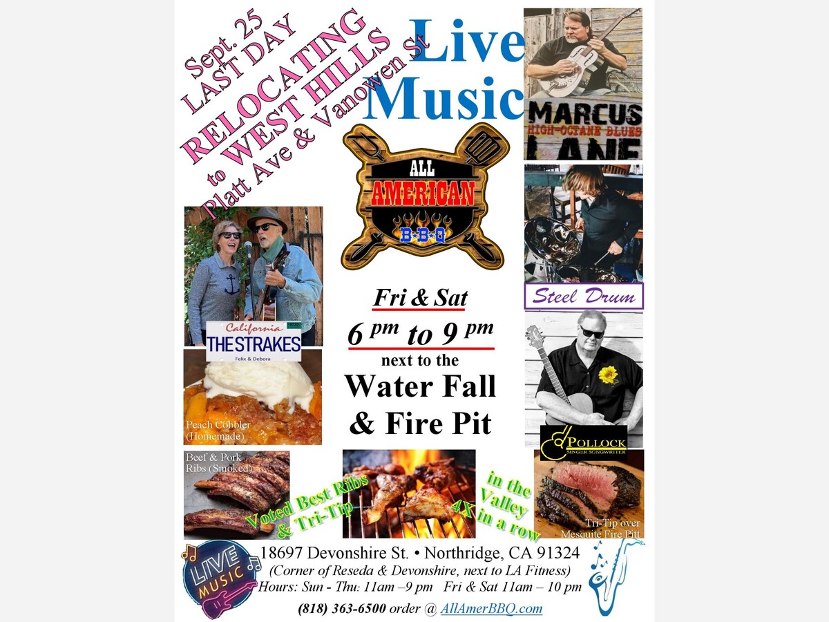 LAST Sat Free Live Music with your local artist @ All American BBQ Voted Best Rib(Beef/Pork) & Tri-Tip in the Valley. Wash it down with Cold Beer & Wine