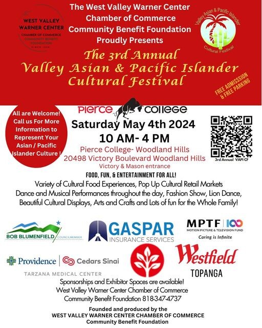 It's FREE ADMISSION and FREE PARKING! 3rd Annual Valley Asian & Pacific Islander Cultural Festival May 4 2024 Pierce College | The West Valley~Warner Center Chamber of Commerce (woodlandhillscc.net)