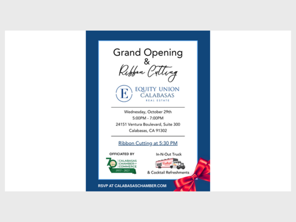 All are welcome to join us on Wednesday, Oct. 29th as we celebrate Equity Union’s new location in Calabasas!