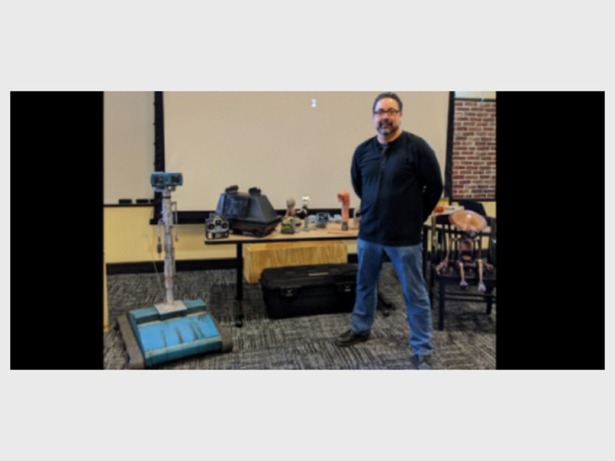 Paul Thompson will offer an overview and demonstration of full-sized entertainment robots and animatronics. Live speaker with multiple examples of robots, materials used to make robots, and the description of different processes to make robots.