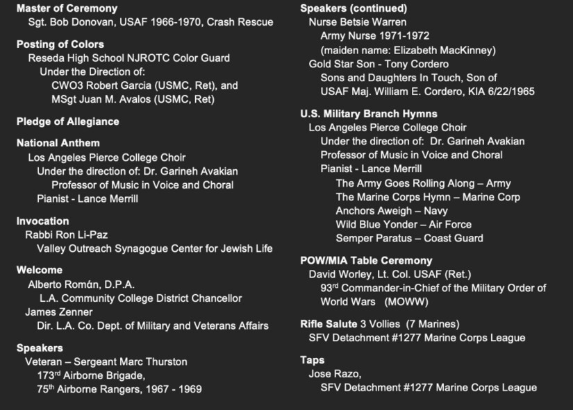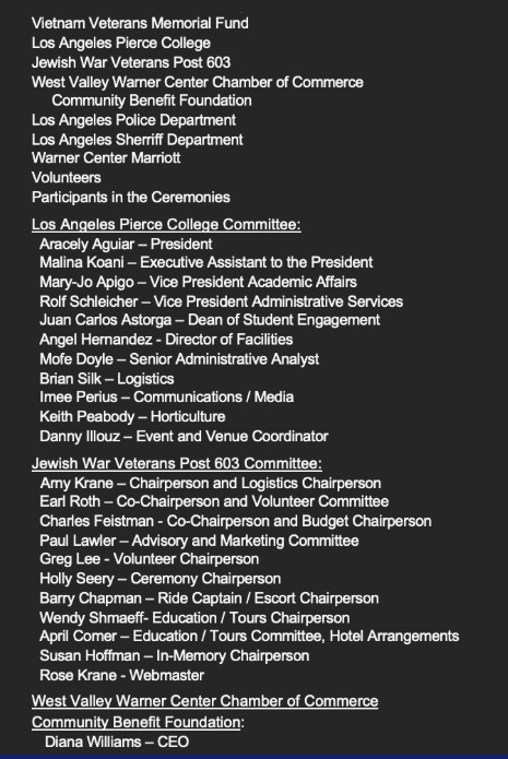 For the full schedule and additional information, visit The Wall That Heals, Woodland Hills