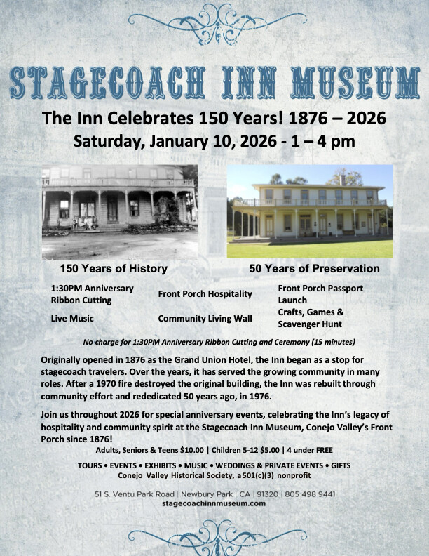 Stay and enjoy Porch Hospitality with NCL Conejo Valley volunteers, live music, crafts with our Junior Docents, games, a scavenger hunt, our anniversary-year Porch Passport Launch and Community Living Wall, plus Inn tours, special exhibits, and more!