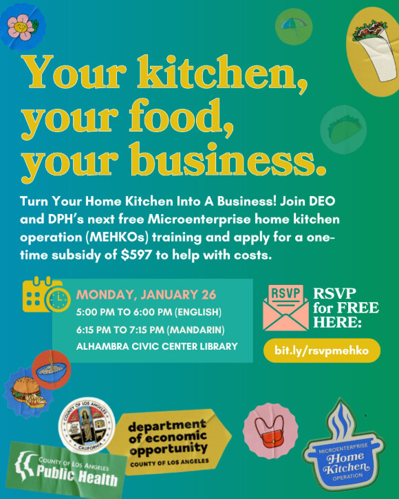 Join DEO and @lapublichealth for a no-cost training to learn how to legally run operate your home as a mini restaurant or commissary space from your home, offering takeout, delivery, or even dine-in experiences! Also, find out how to apply for a limited-time $597 permit subsidy.